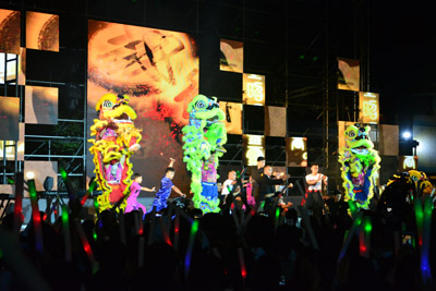 還有精彩絕倫的特色功夫表演、吉他彈唱、動感鼓樂、絢麗舞蹈讓晚會現場氣氛持續升溫。現場觀眾手中揮舞著熒光棒,心情激動不已,每個人臉上都洋溢著歡喜、澎湃的激情。